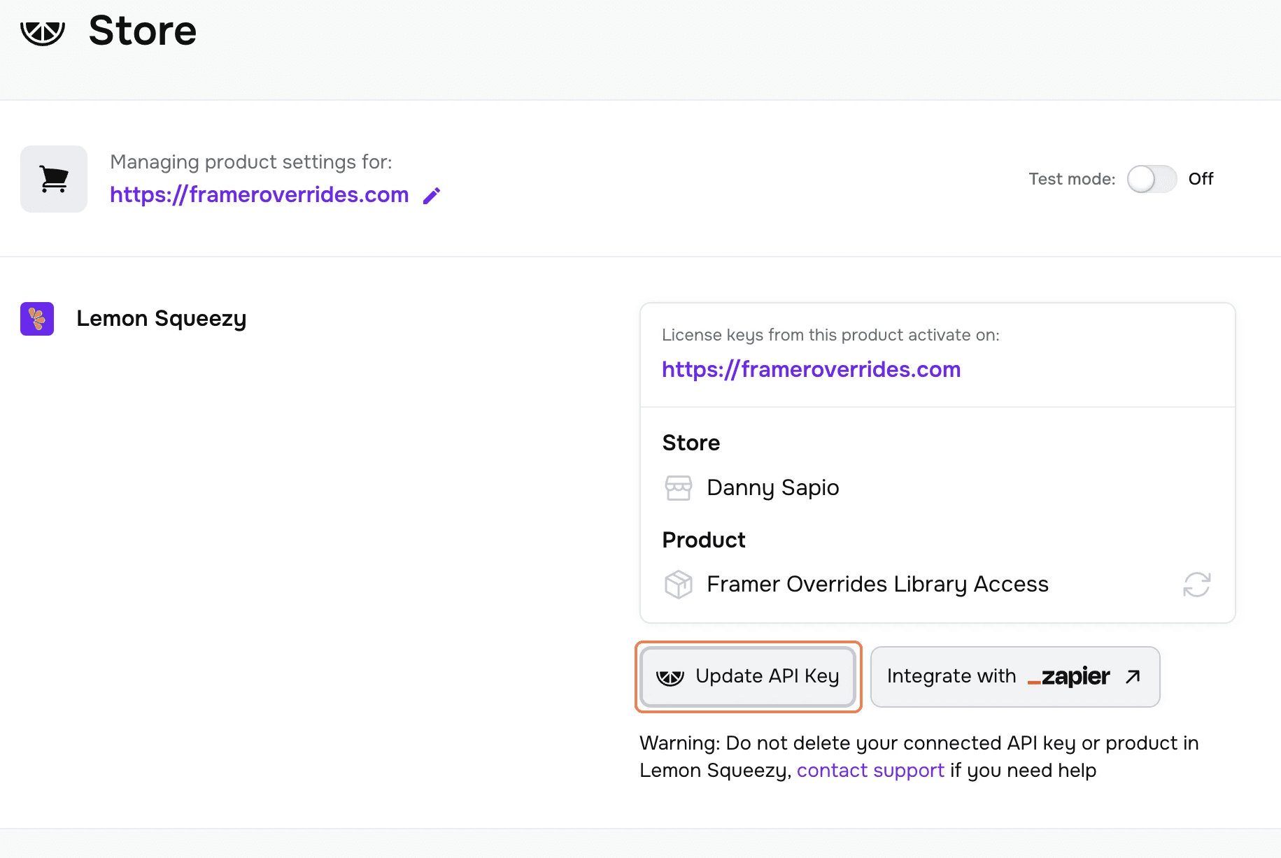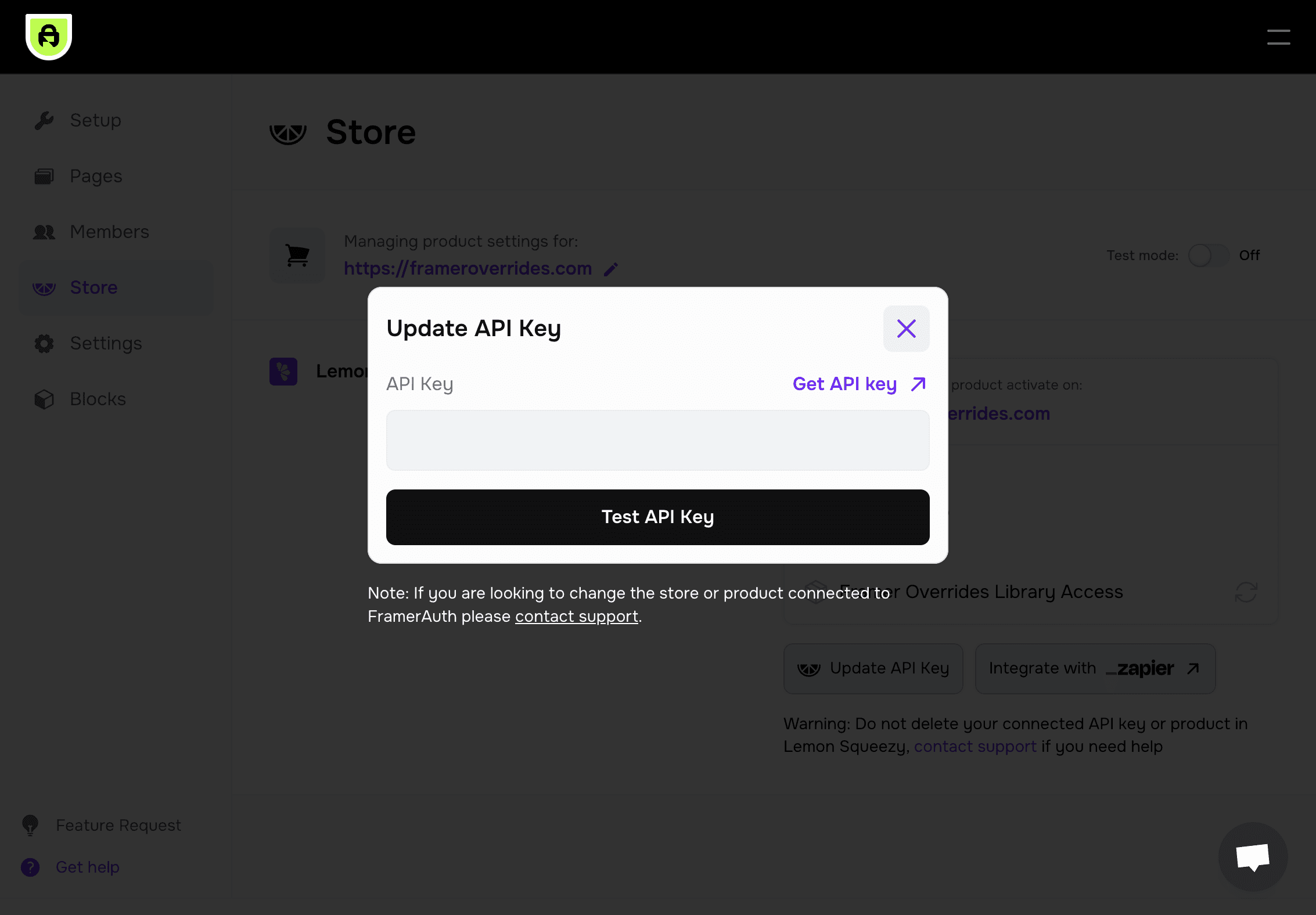The new Store page makes it simple to add a Lemon Squeezy store to your FramerAuth account if you opted out of setting it up during onboarding. You can also use this page to see which products are tied to your test and live domains.