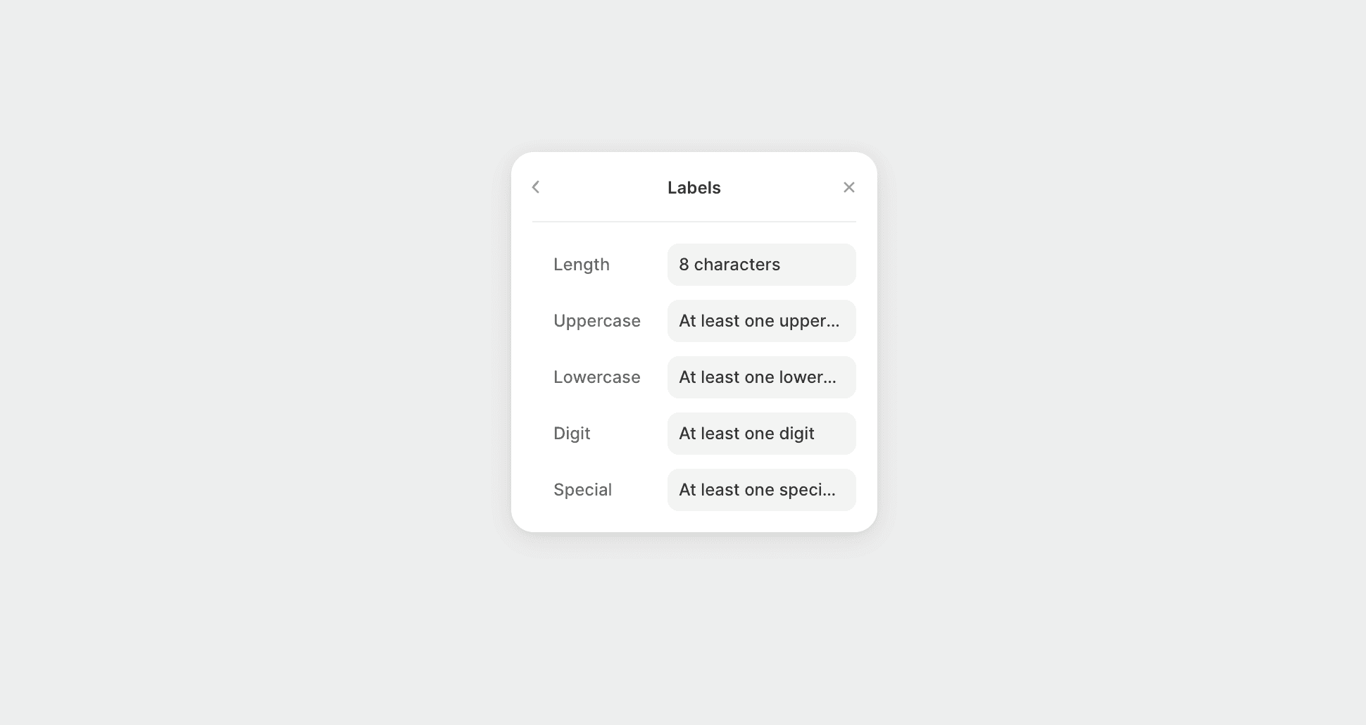 Edit password validator text labels