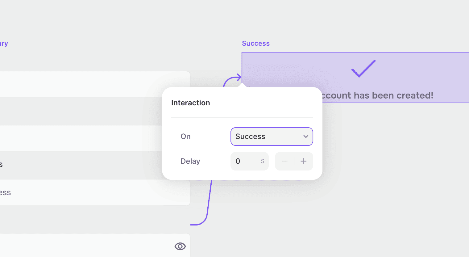 This feature enables two new interactions, Success and Error. You can now trigger a modal/pop-over or change variant on Error/Success.